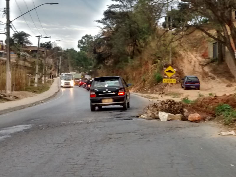 Um buraco no canto da pista da LMG-806, na altura do bairro Neviana, em Ribeirão das Neves, está exigindo máximo cuidado de quem passa em direção à BR-040. Além de colocar em perigo motoristas e pedestres, o problema está causando retenção no trânsito nos horários de pico.