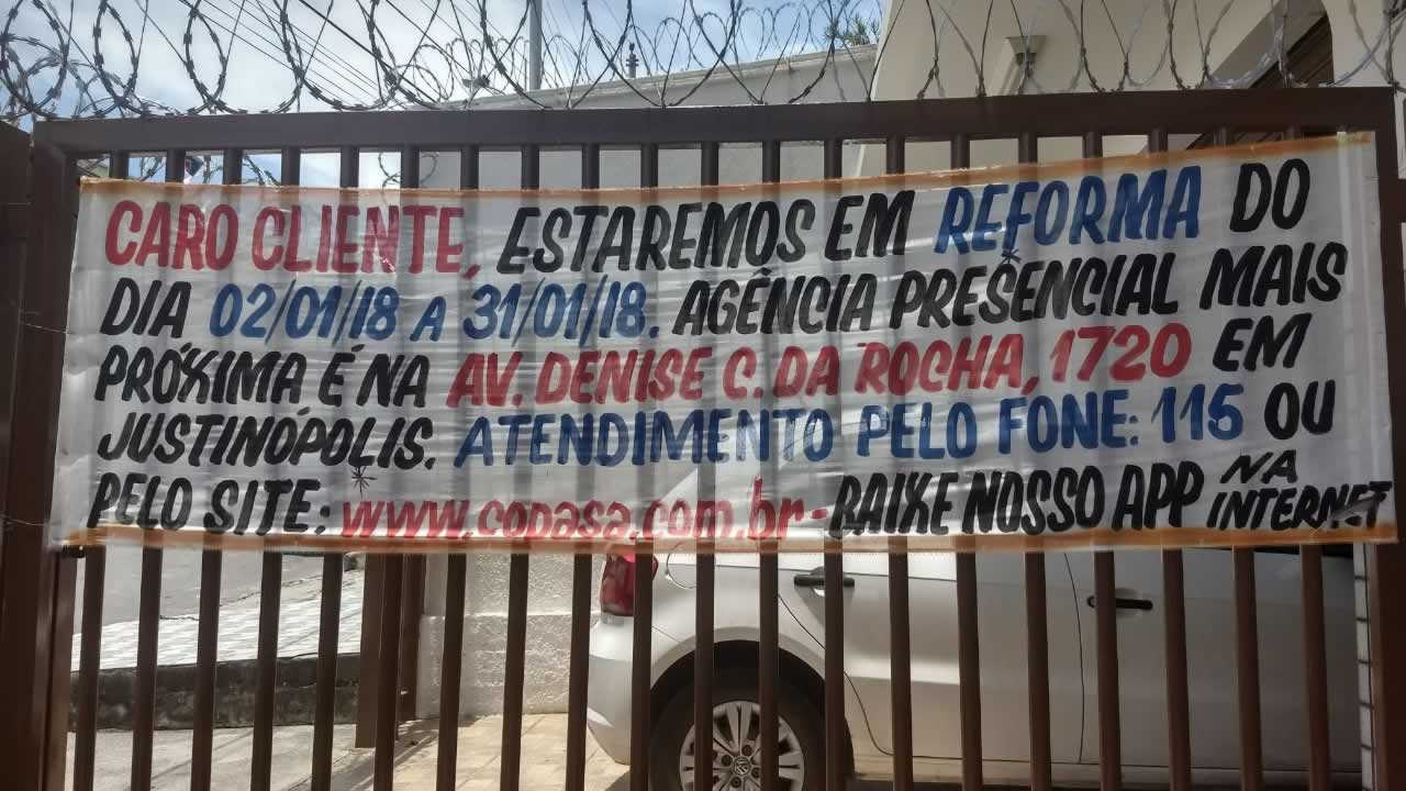 De acordo com a companhia, a previsão é de que a unidade da Rua Antônio Miguel Cerqueira Neto, 220A, no bairro São Pedro, fique suspensa até 31 de janeiro. Até lá, os clientes devem encaminhar-se até a avenida Denise Cristina da Rocha, 1720, bairro Cerejeiras.