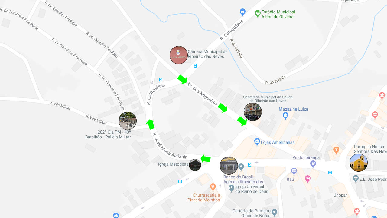 A Prefeitura de Ribeirão das Neves realiza novas mudanças no trânsito da região central da cidade a partir desta quarta-feira (13). Desta vez, as alterações serão no sentido de circulação de duas vias próximos à Câmara Municipal.