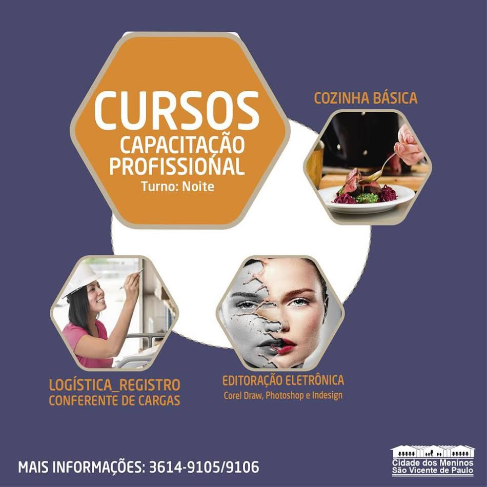 A Cidade dos Meninos está com vagas para os cursos de capacitação profissional em Ribeirão das Neves. São três cursos: Cozinha Básica, Logística (Conferente de cargas) e Editoração Eletrônica (Corel Draw, Photoshop e Indesign), todos com valor simbólico de matrícula. De acordo com a instituição, os cursos serão ministrados no período noturno.