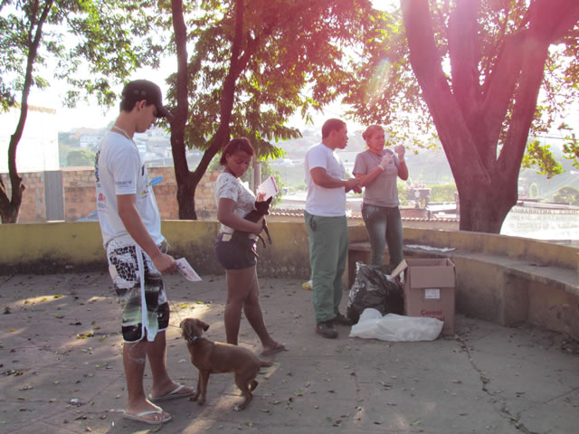 Milhares de pessoas aproveitaram o sábado (23) para levar o animal de estimação para participar da campanha de vacinação antirrábica. Ao todo, 77 postos espalhados pela cidade receberam cães e gatos para receber a dose da vacina. Na Praça da Bíblia, no bairro Santa Marta, próximo ao Hospital, funcionou um desses postos de atendimento à população.