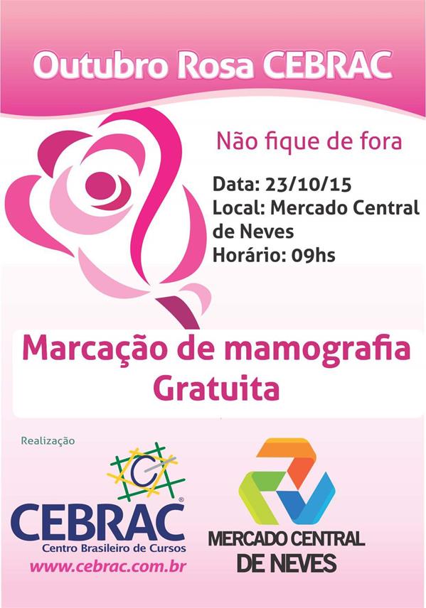 O Mercado Central de Neves, em parceria com o Cebrac, recebe nesta sexta-feira (23), das 9h às 12h, um dia especial no combate ao câncer de mama.