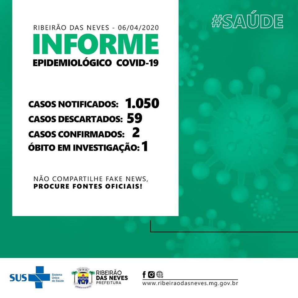A Secretaria Municipal de Saúde (SMS) divulgou, nesta segunda-feira (6), boletim epidemiológico no qual constam dois casos confirmados e uma morte suspeita por Coronavírus em Ribeirão das Neves. Ao todo, são 1050 notificações e 59 casos descartados por exames.