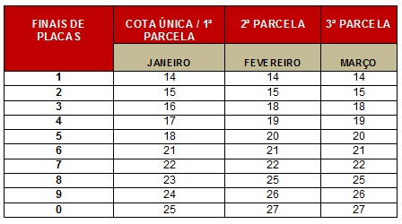 Começa nessa segunda-feira (14) o pagamento do IPVA 2013 em Minas Gerais, com o vencimento da 1ª parcela ou cota única dos veículos com placas de final 1. Desde o início de dezembro, 506.519 contribuintes já quitaram integralmente o IPVA 2013 e outros 113.518 pagaram a primeira parcela, totalizando 620.037 pagamentos efetuados.