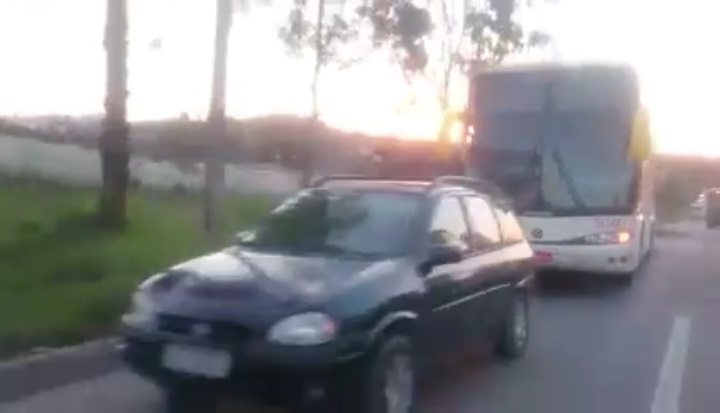 Questionado pela corporação, o motorista do coletivo informou que um Chevrolet Corsa o teria fechado na rodovia e, para evitar a batida, acabou jogando para o acostamento e atingiu o poste.