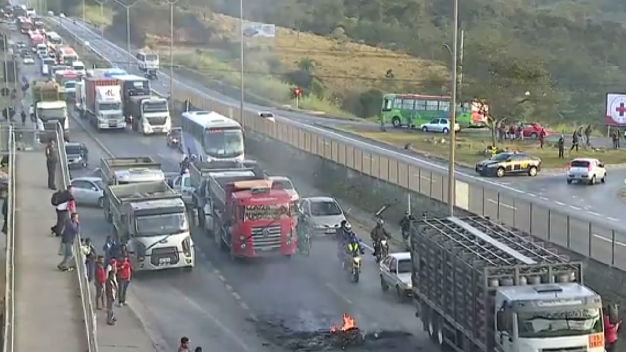 ...Caminhoneiros fazem protesto nesta quarta-feira (2) no km 511 da BR-040, altura do trevo de