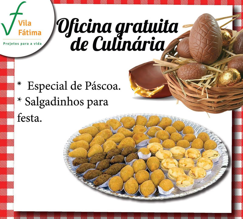 O Projeto Vila Fátima, em Justinópolis, está oferendo aos moradores da cidade uma oficina gratuita de culinária. Quem tiver interesse pode se qualificar na produção de ovos de páscoa e salgadinhos para festas.