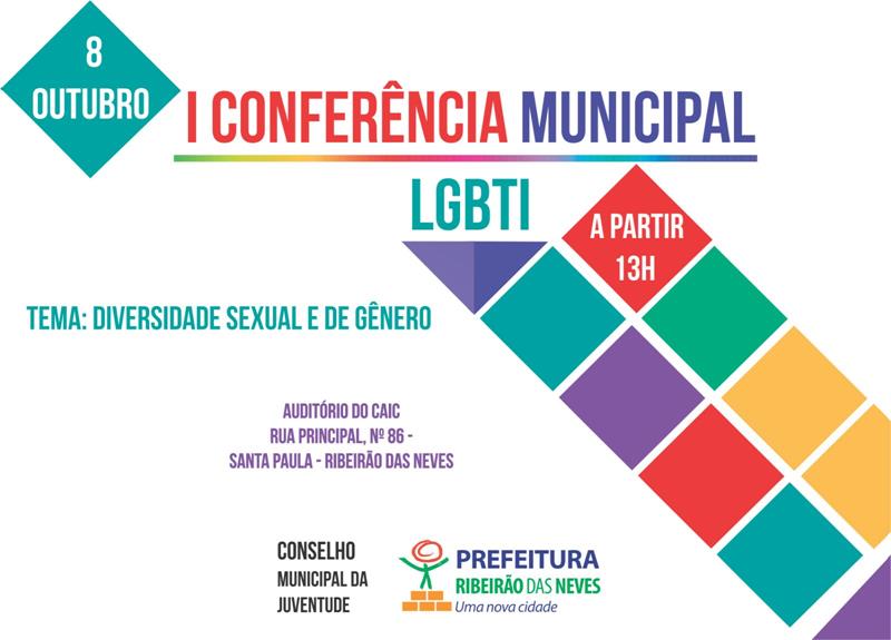 O Conselho Municipal da Juventude realiza, nesta quinta-feira (8), a partir das 13h, no Auditórico do Caic, a I Conferência Municipal de Lésbicas, Gays, Bisexuais, Transsexuais e Intersexos (LGBTI) em Ribeirão das Neves, com o tema "Diversidade Sexual e de Gênero".