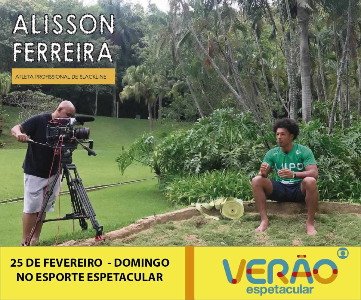 No próximo domingo (25), o atleta de slackline Alisson Ferreira será destaque do Verão Espetacular, da Rede Globo. No programa, será exibida uma competição de Waterline, gravada no fim de 2017 em Rio Quente, no interior de Goiás.