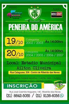 O América Futebol Clube realiza, na próxima segunda (19) e terça-feira (20), às 14, no Estádio Municipal, uma peneira para avaliação de jogadores para as categorias de base do clube.