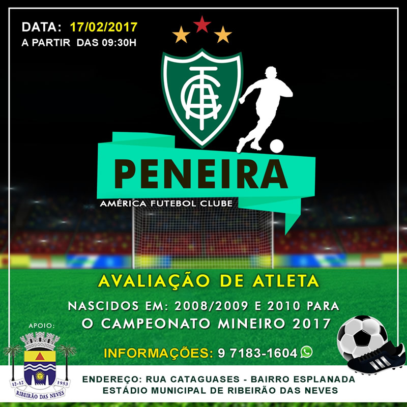 O América Neves realiza, na próxima sexta-feira (17), a partir das 9h30, no Estádio Municipal de Ribeirão das Neves, uma avaliação de atletas, a famosa "peneira".