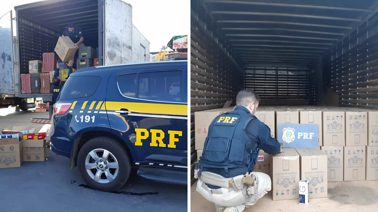 De acordo com a PRF, os cigarros contrabandeados foram encontrados pelos policiais durante fiscalização na carroceria de um caminhão com placa de Patis, interior de Minas Gerais.