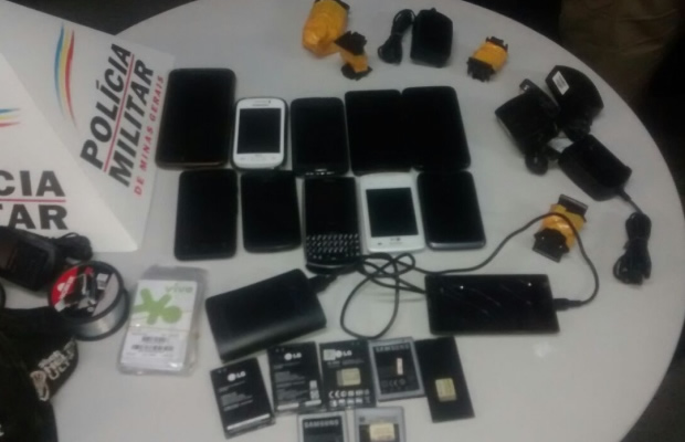 ...Três pessoas foram presas após tentarem jogar celulares dentro da