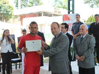 Na oportunidade, também foram entregues os certificados de conclusão do curso de piscicultura a oito presos do Presídio Antônio Dutra Ladeira, que agora trabalham com a criação de peixes na unidade. O curso, que teve duração de aproximadamente sete meses, foi ministrado por professores e doutorandos da Escola de Medicina Veterinária da Universidade Federal de Minas Gerais (UFMG).