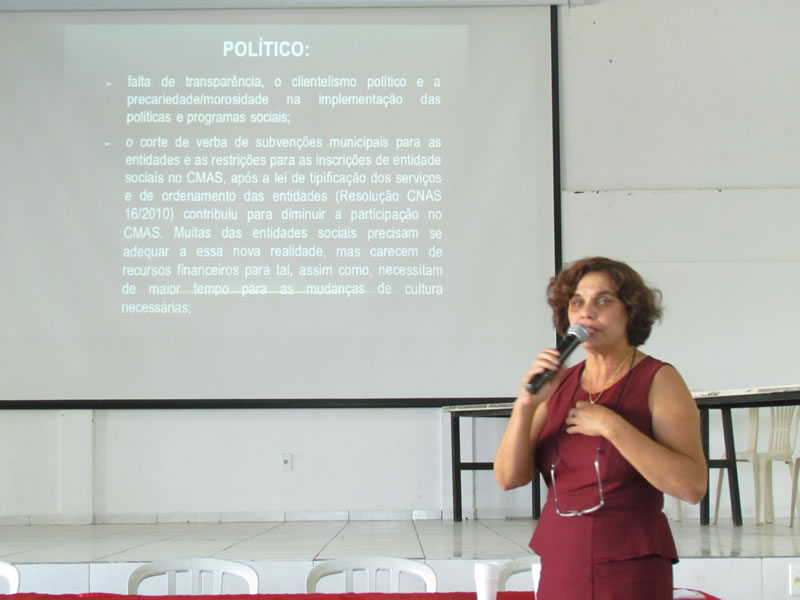 Dentre os principais problemas apontados por Rosely, destacam-se a inatividade dos conselhos e o círculo vicioso que a falta de quórum das reuniões e o desinteresse pelas mesmas provocam. A falta de infraestrutura física, de logística, de apoio técnico e de formação política e social também foram apontadas, além das questões de apelo político que giram em torno desses órgãos.