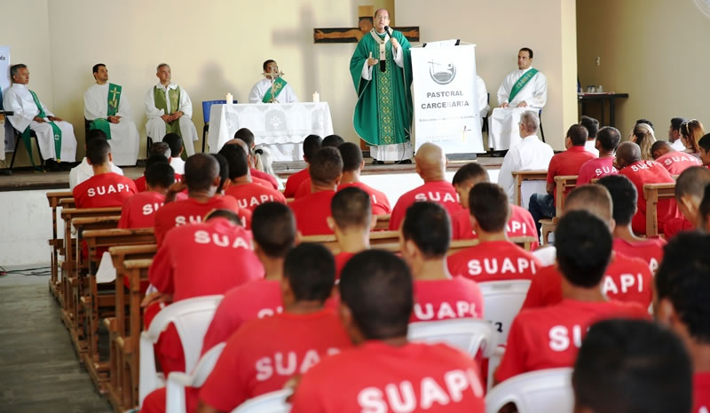 Os presos da Penitenciária Dutra Ladeira receberam, nessa na quinta-feira (22), a visita do Arcebispo Metropolitano de Belo Horizonte, dom Walmor Oliveira de Azevedo, para a celebração do Jubileu dos Presos, um importante momento vivenciado dentro da programação do Jubileu Extraordinário da Misericórdia proclamado pelo Papa Francisco.