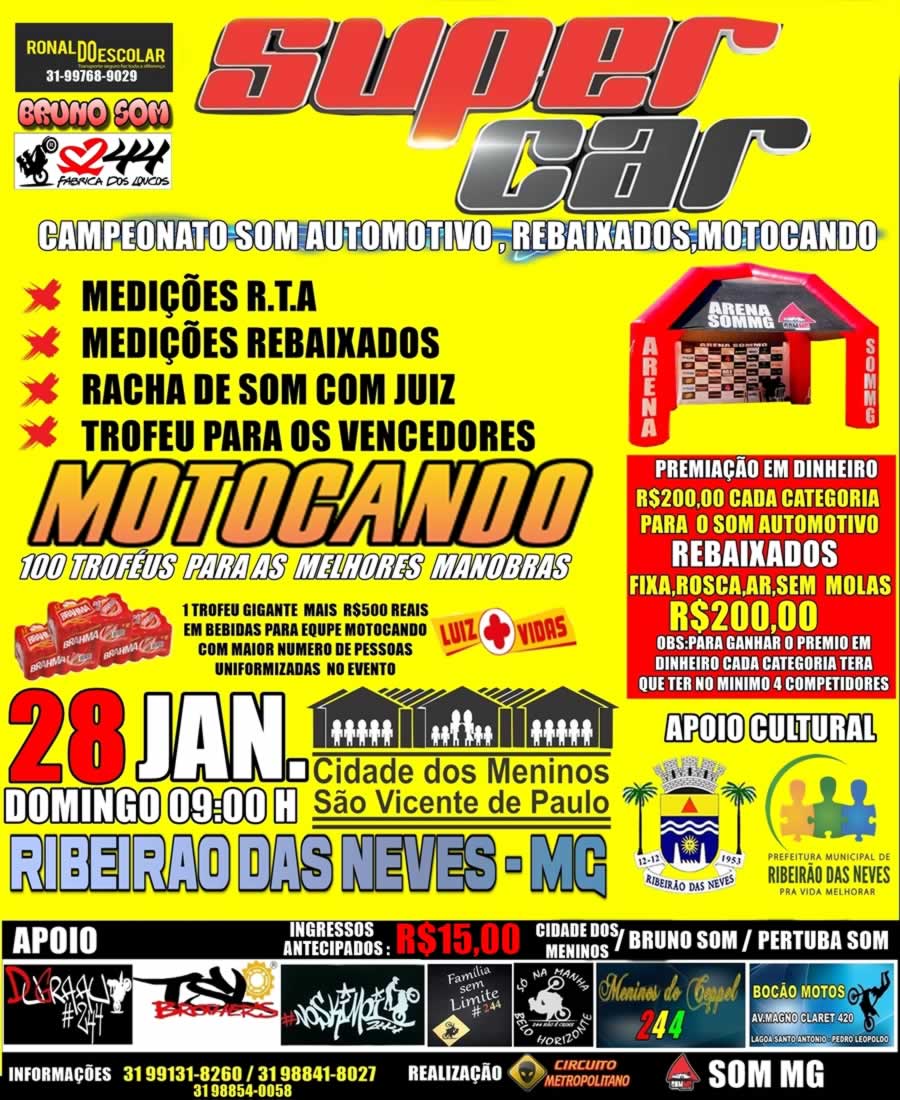 A Cidade dos Meninos recebe no dia 28 de janeiro, a partir das 9h, o Super Car - Campeonato de Som Automotivo, Carros Rebaixados e Motocando. Para quem gosta de assistir ou até mesmo competir, uma ótima oportunidade para aparecer na instituição.