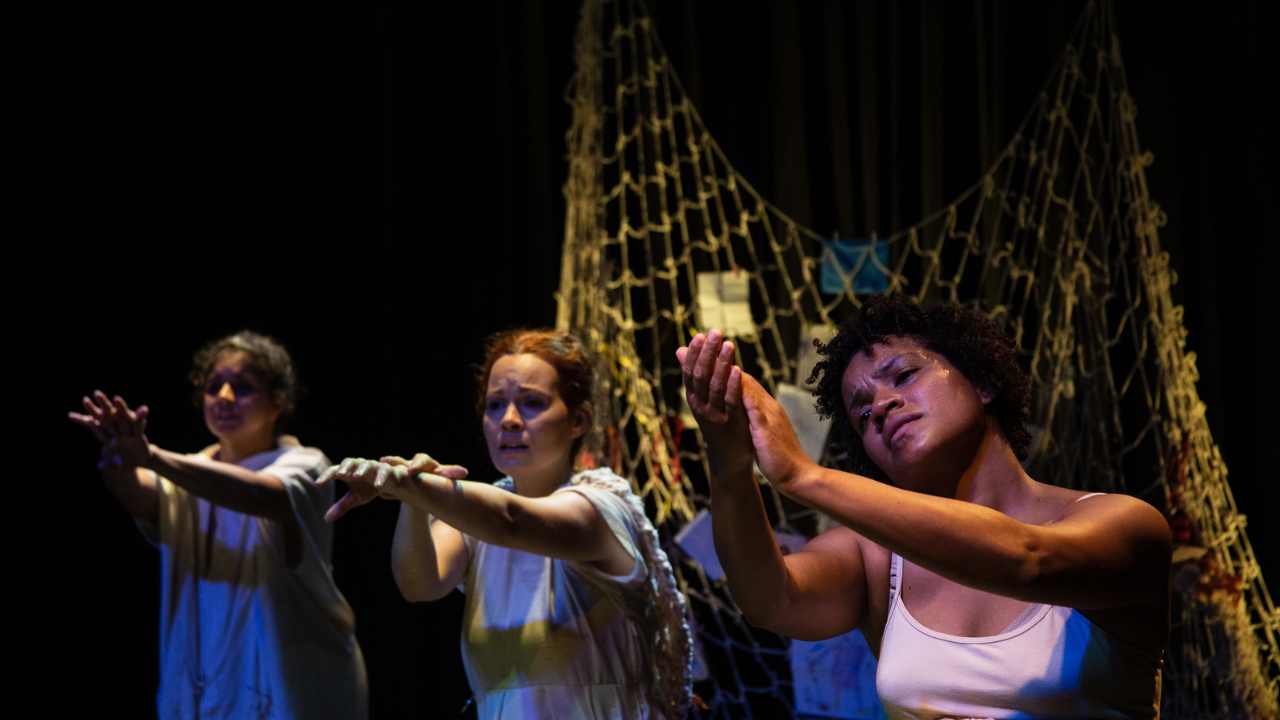 A encenação, rica em simbolismos e poesia visual, utiliza elementos comz mãos, redes, fios, água, chaves, vestidos e a natureza para construir um universo sensível e poético. O cenário e figurino, assinados por Alexandre Tavera completam essa imersão estética, transportando o público para um universo onde a memória, a família, a maternidade e a pandemia se entrelaçam.