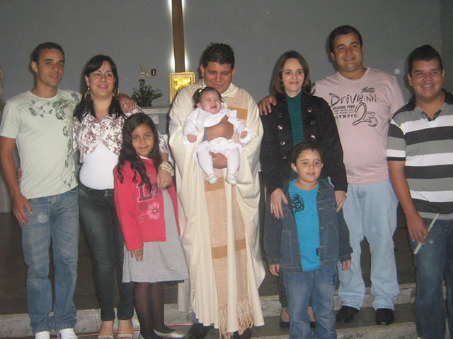 Foi batizada na Matriz da Igreja Católica a bebê Mariana, que irá completar 6 meses no dia 14 de novembro. Mariana é filha de José Roberto Ferreira Glória e de Paula Peixoto Guimarães. Parabéns ! |
