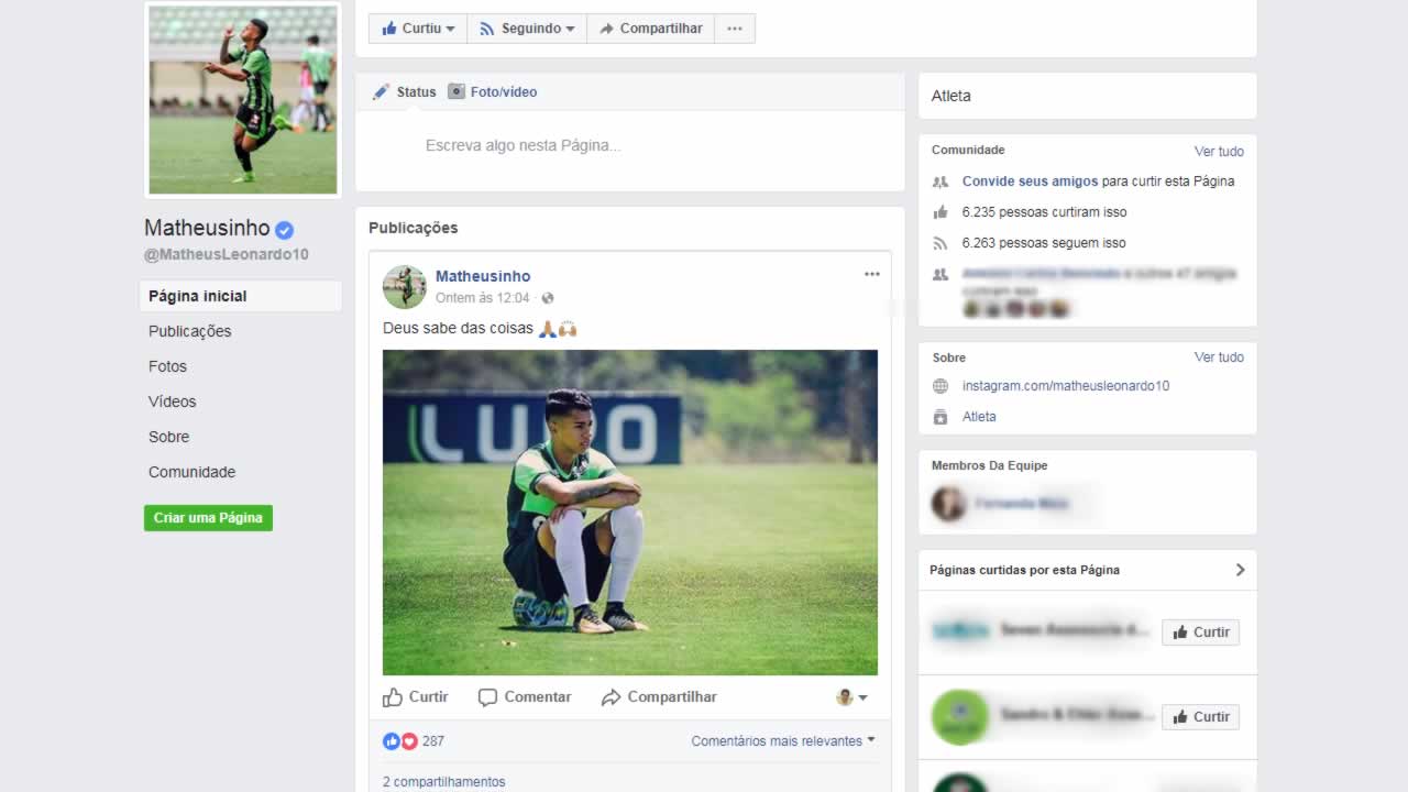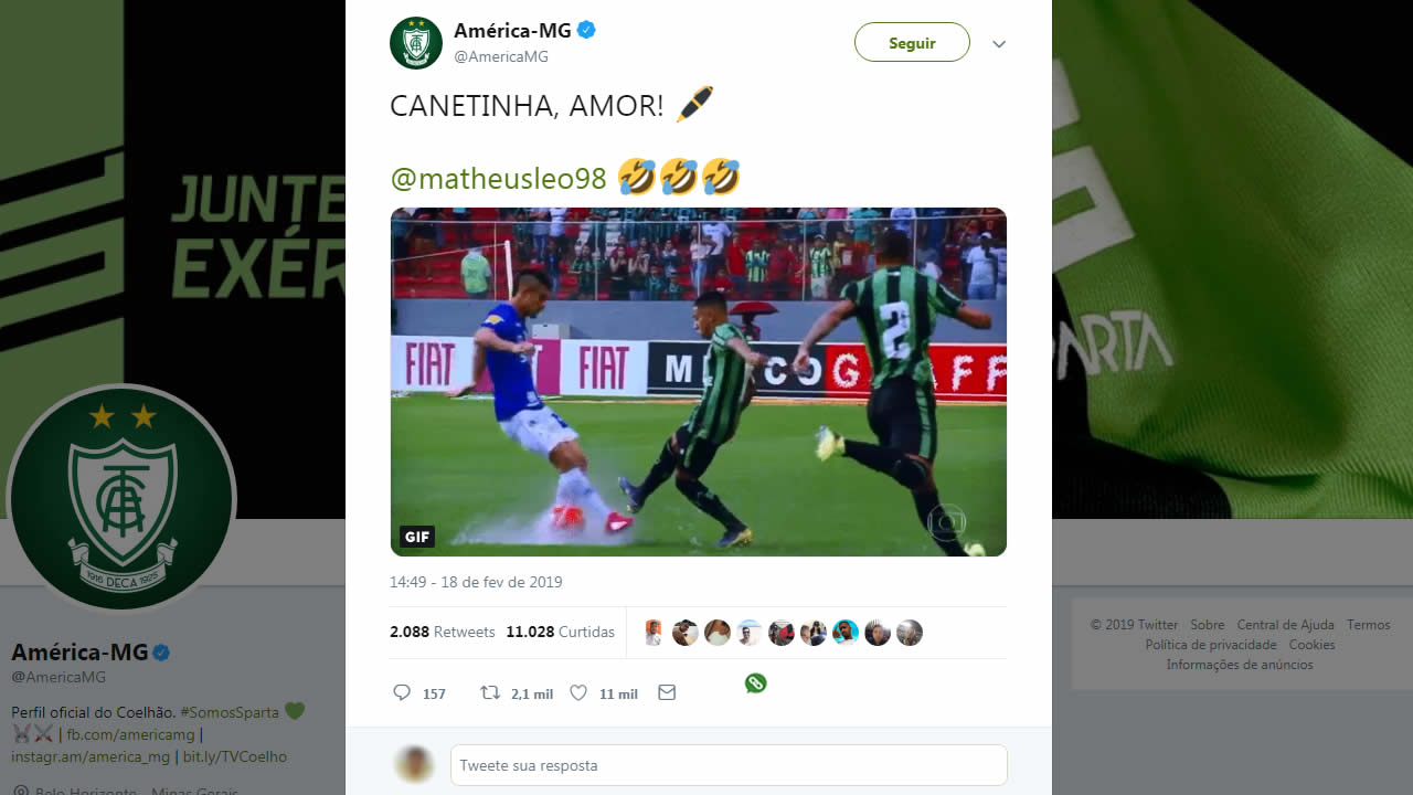 O meia-atacante Matheusinho, do América, foi eleito o 14º melhor jogador Sub-20 do mundo pela revista inglesa Four Four Two. Revelado na base do Coelho, o nevense chegou ao profissional após se destacar na Copa São Paulo de Futebol Júnior de 2016.