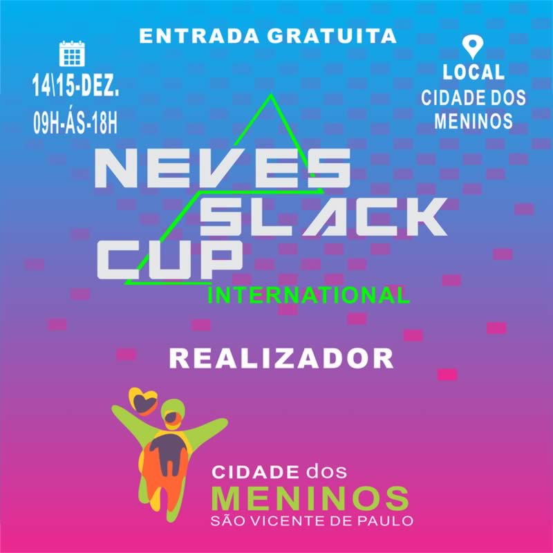 Pelo terceiro ano consecutivo, Ribeirão das Neves é sede do Campeonato Nacional de Slackline, o Neves Slack Cup. A competição será realizada nos dias 14 e 15 de dezembro, das 9h às 18h, na Cidade dos Meninos. O torneio reúne os maiores nomes do esporte que desafia os limites. Para esta edição, além de brasileiros, estão confirmados a presença de americanos, argentinos, chilenos, peruanos e um coreano.