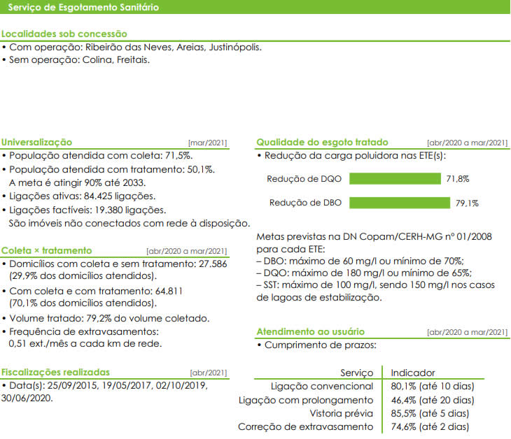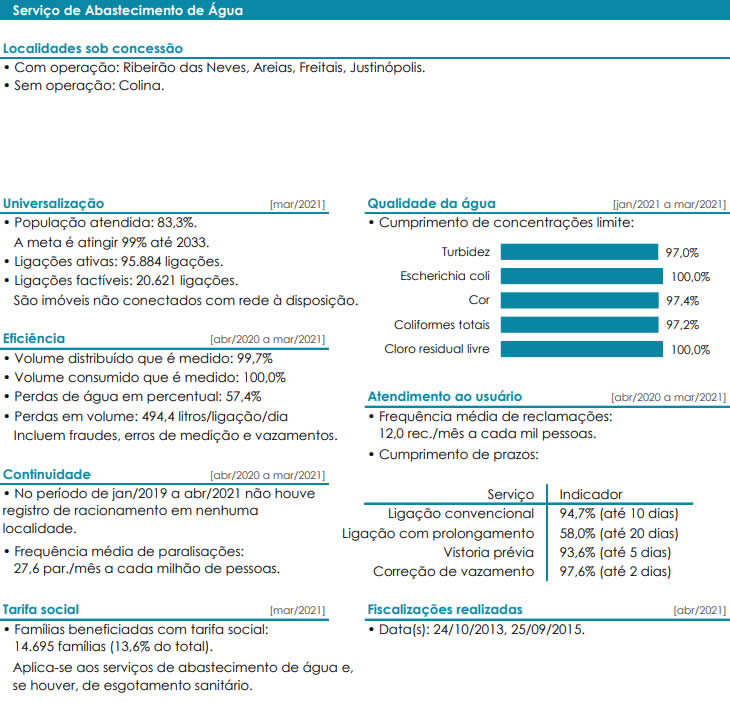 Em Ribeirão das Neves, os serviços prestados pela Copasa, que tem contrato de concessão até 2034.