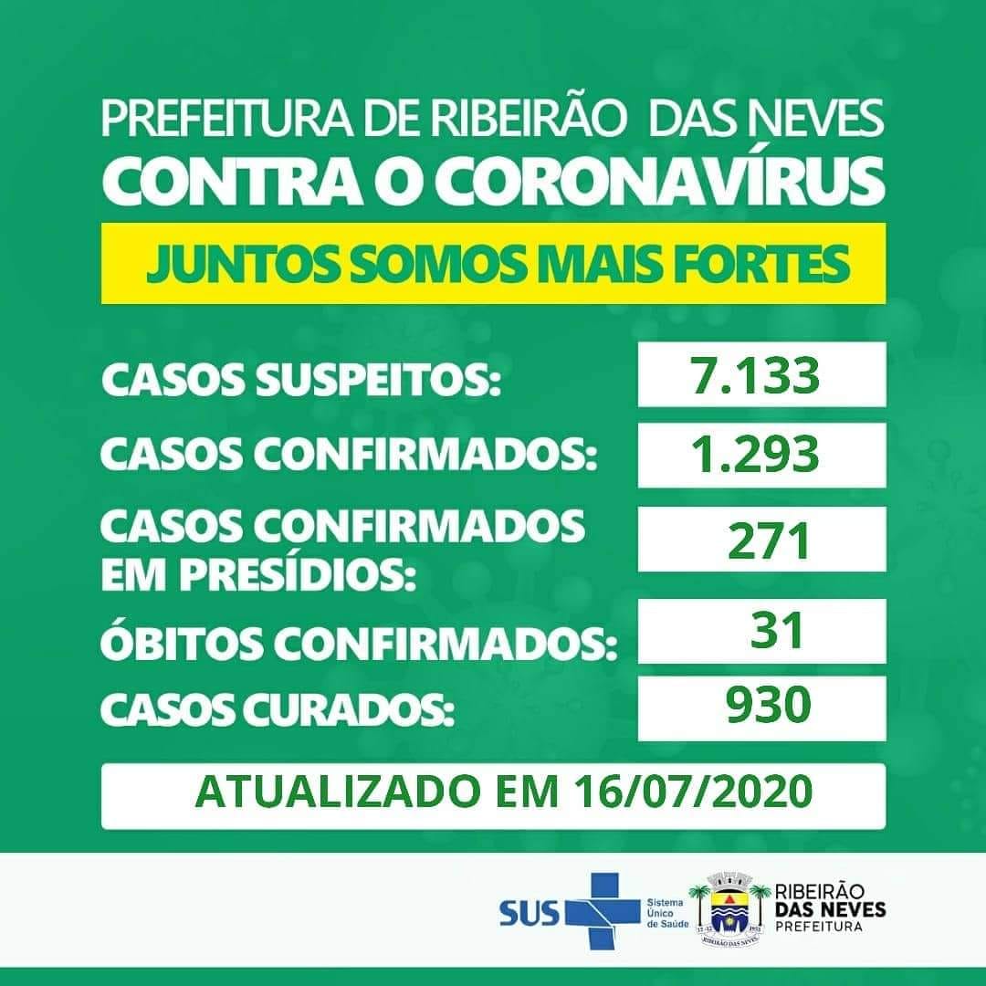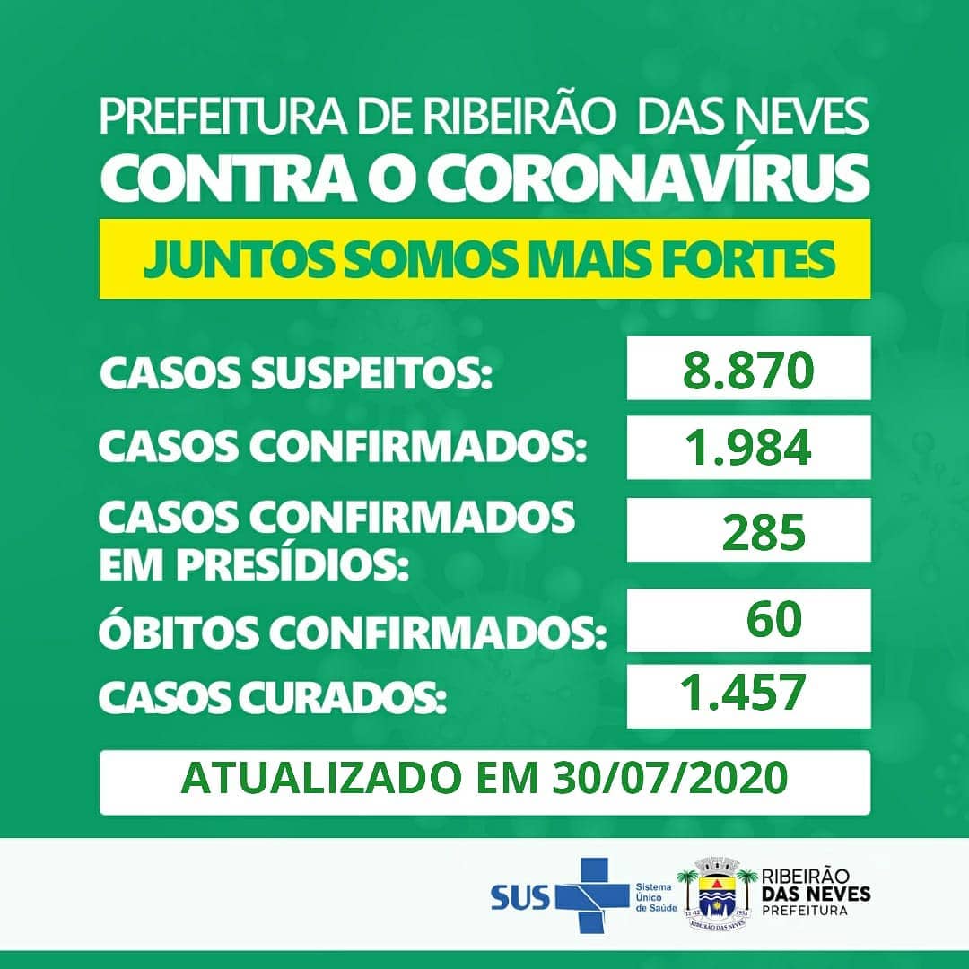 • Ribeirão das Neves supera 30 óbitos e 1.500 casos confirmados relacionados ao coronavírus