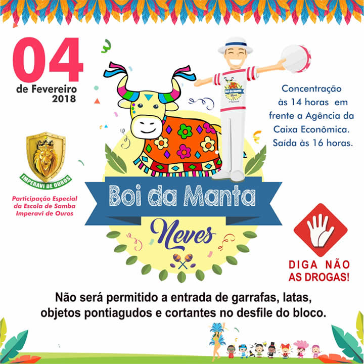 A organização do "BOi da Manta - O Renacismento" divulou os destalhes da festa, programada para acontecer no dia 4 de fevereiro, a partir das 14h.