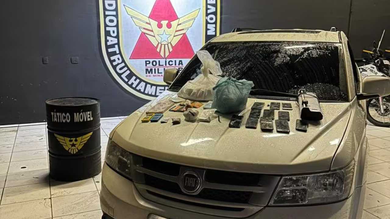 Durante a abordagem, a polícia encontrou no interior do veículo um revólver calibre 32 carregado, enforcadeiras, materiais eletrônicos, celulares e roupas. A análise da placa revelou que o automóvel havia sido furtado em Belo Horizonte no dia 14 de janeiro. Além disso, uma motocicleta Honda XRE vermelha, também com queixa de furto, foi apreendida em posse de um dos suspeitos.