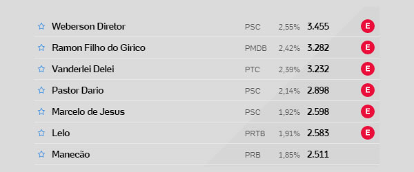 • Veja quais foram os candidatos campeões de votos na corrida pela Câmara Municipal