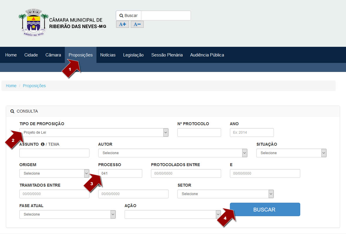 Qualquer cidadão pode consultar no site do Poder Legislativo nevense os detalhes da destinação desses recursos por cada vereador. Basta acessar a opção "Proposições" do menu  principal e, ao abrir a página de consulta, selecionar o campo "Tipo de Proposição" como "Projeto de Lei" e inserir no campo "Processo" o número 041. Por fim, basta clicar no botão azul "Buscar" que serão exibidas todas as emendas parlamentares sobre a Lei Orçamentária de 2019. Veja: