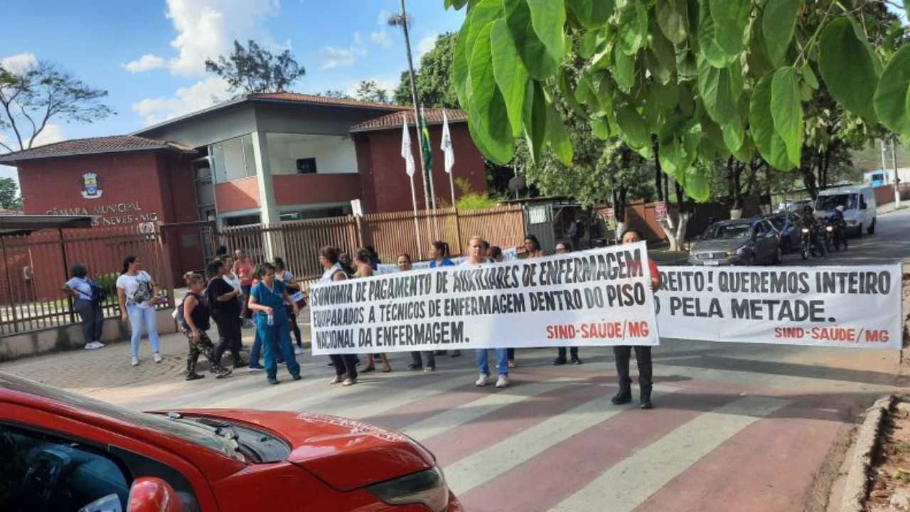 O Sind-Saúde Núcleo Ribeirão das Neves está realizando nesta segunda-feira, 28 de julho, uma manifestação dos trabalhadores da saúde na porta do gabinete do prefeito.