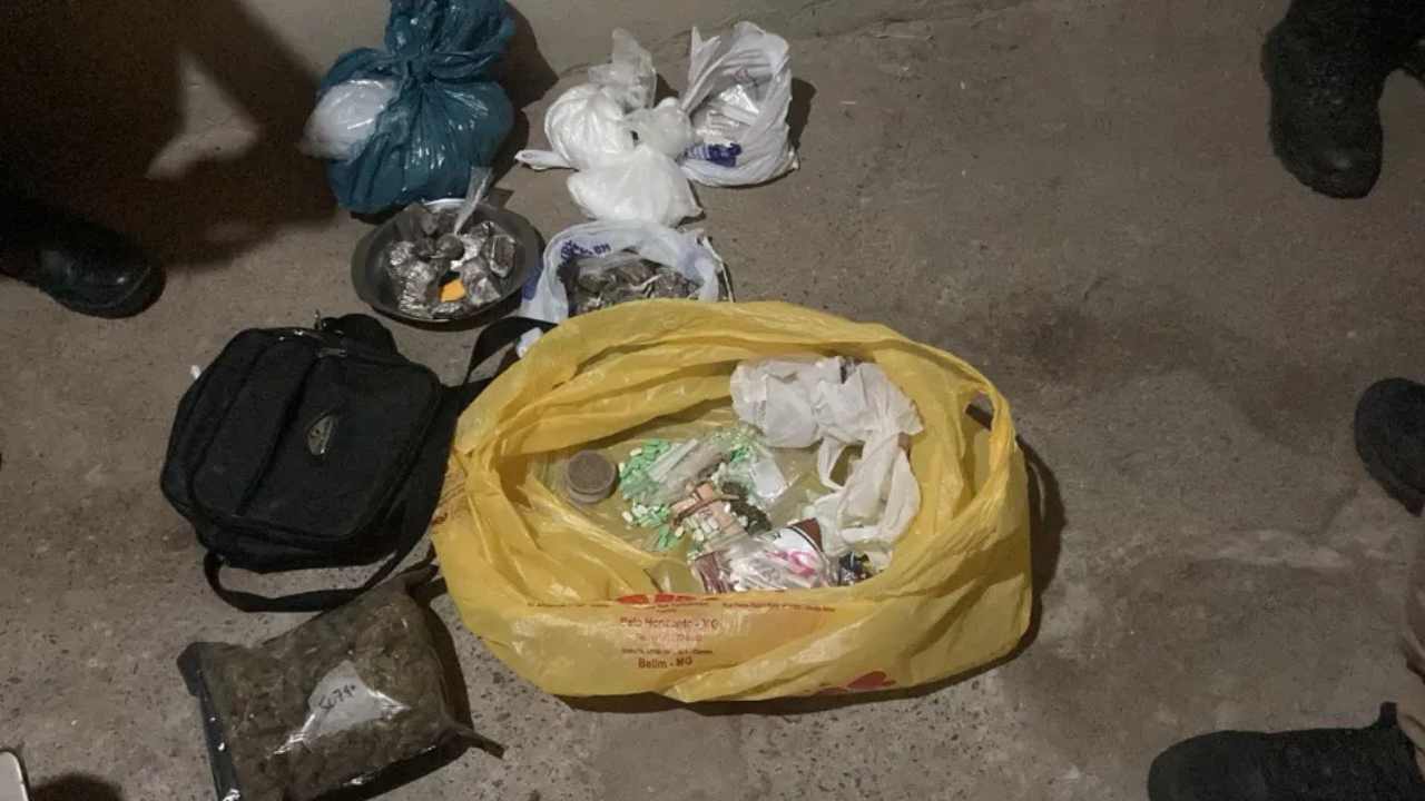 Na casa denunciada, os policiais encontraram uma mochila com 720 pinos de cocaína, 120 pedras de crack, três porções de maconha, balanças de precisão e materiais usados para fracionar e embalar entorpecentes.