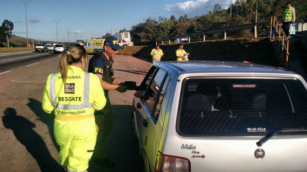 A Via 040, Polícia Rodoviária Federal, Polícia Militar Rodoviária e o Instituto Estadual de Florestas(IEF), realizam, ao longo desta semana, uma série de blitz rodoviárias na BR-040. As abordagens têm por objetivo alertar os motoristas quanto aos riscos de incêndios florestais nessa época do ano e, também, tratar do tema segurança viária, em comemoração aos dias do motorista e do motociclista, comemorados em 25 e 27 de julho, respectivamente.