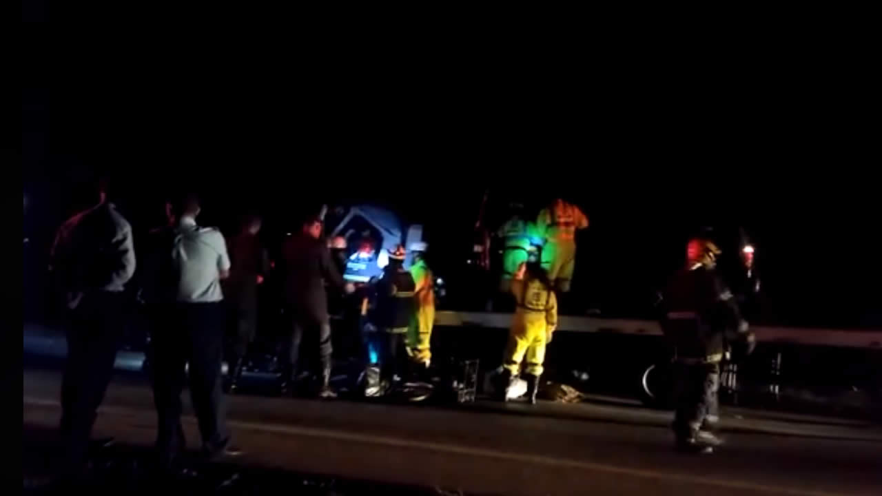 Os ônibus se envolveram em um engavetamento com um carro e uma caminhonete, que foi parar no canteiro central.