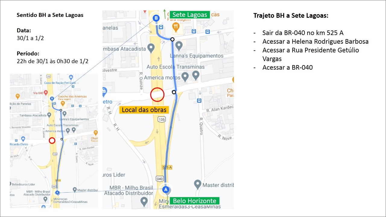 Situação: Sem impacto nas pistas principais da rodovia, trabalho será executado às margens da pista sentido Belo Horizonte a Sete Lagoas.
