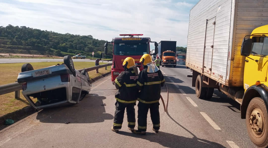 De acordo com o Corpo de Bombeiros, um carro com três homens capotou na marginal que liga a rodovia à penitenciária público-privada, altura do km 509. Com o impacto do acidente, os dois passageiros que não usavm cinto de segurança foram ejetados do veículo, sendo que um deles foi arremessado até a pista principal da BR-040. O motorista foi socorrido pelo atendimento da Via 040, concessionária que administra a rodovia, e posteriormente transferido pelo helicóptero Arcanjo dos Bombeiros com ferimentos leves.