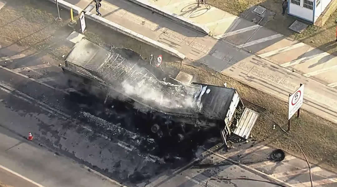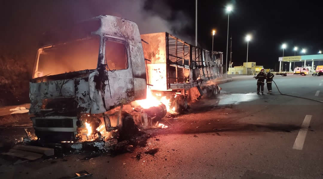 • Após colisão, caminhão pega fogo próximo à praça de pedágio da BR-040