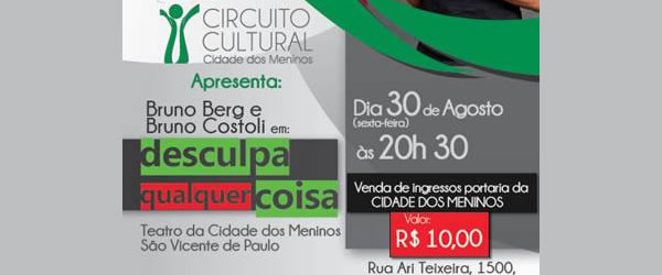 • 'Desculpa qualquer coisa' é a segunda atração do Circuito Cultural Cidade dos Meninos