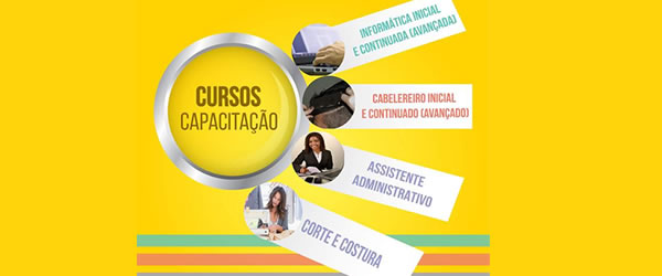 São várias vagas para auxiliar administrativo em três horários distintos, manhã, tarde e noite. Corte e costura na parte da manhã. Cursos na área da beleza, para quem deseja ser cabeleireiro também em período noturno. Para quem tem interesse na área da informática, estão disponíveis dois modelos de curso, módulo I (básico) e módulo (continuado).