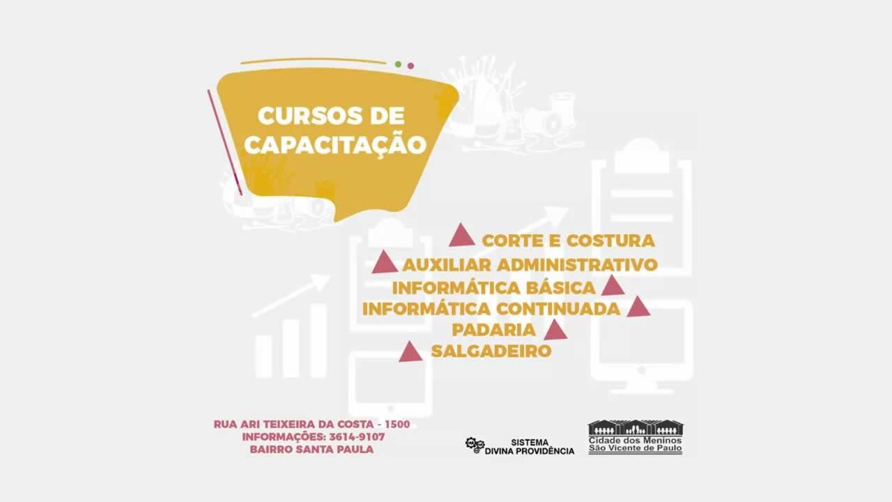 • Cidade dos Meninos divulga vagas para cursos de capacitação profissional