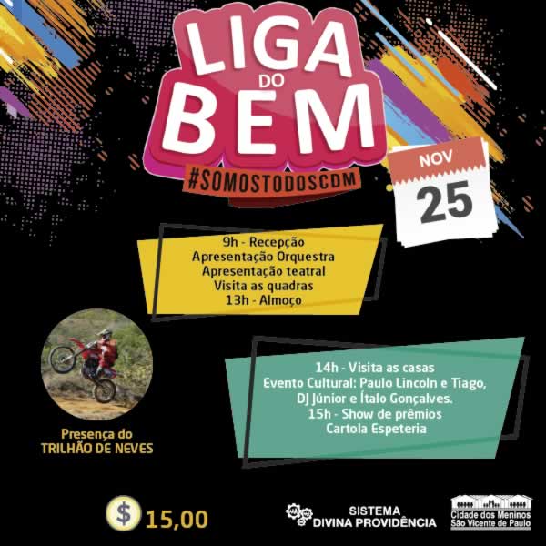 A Cidade dos Meninos, que está desde 1994 em Ribeirão das Neves dando oportunidades aos jovens, passa por momento delicado em função da redução dos recursos financeiros. Diante dessa situação, um grupo de empresários, alunos e ex-alunos se juntaram para realizar um grande evento com intuito de arrecadar fundos para a instituição: "Liga do Bem".