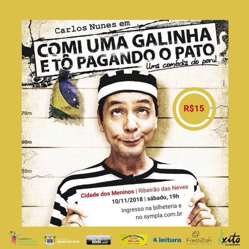 • Carlos Nunes apresenta peça 'Comi uma galinha e tô pagando o pato' na Cidade dos Meninos