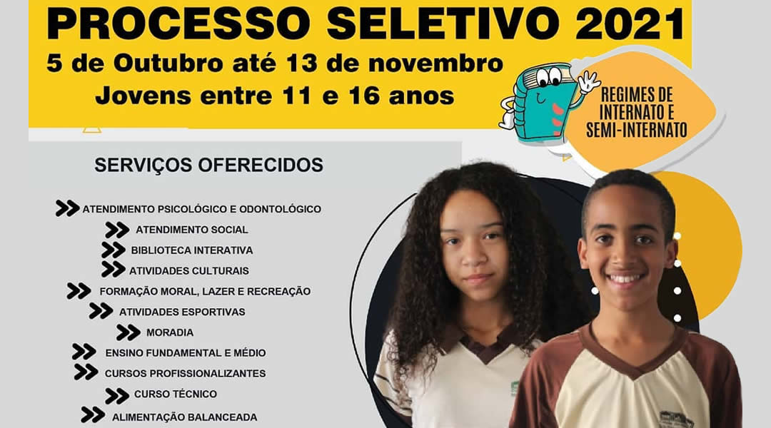 Para entrar na instituição, o jovem precisa ter entre 11 e 16 anos, no ano de 2021, deverá estar cursando a partir do 6º ano (sexto ano) do ensino fundamental.