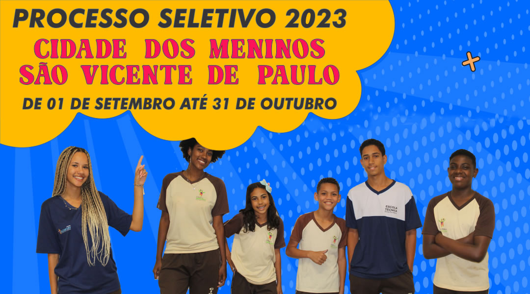 A Cidade dos Meninos divulgou, nesta segunda-feira (29), informações sobre a abertura do Processo Seletivo para entrada de alunos em 2023. As inscrições se iniciam no dia 1º de setembro e vão até o dia 31 de outubro de 2022.
