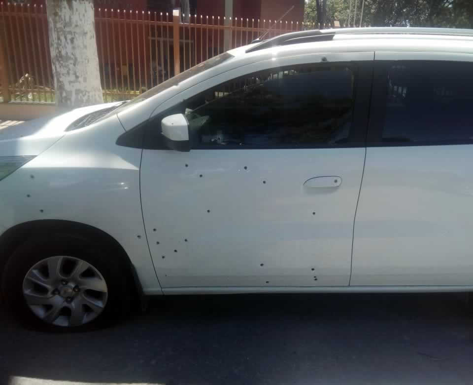 A porta do carro onde ele estava ficou cheia de marcas de bala. Os tiros também atingiram a porta de vidro da Câmara, que foi destruído.