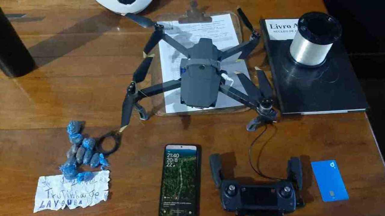 Ao serem flagrados, os homens que estavam controlando o drone fugiram, mas deixaram para trás, além do próprio equipamento, o controle dele, uma mochila carregada com cinco celulares, carregadores, baterias para o drone e 497 gramas de substância análoga à maconha. Tudo indica que o material seria transportado até a penitenciária.
