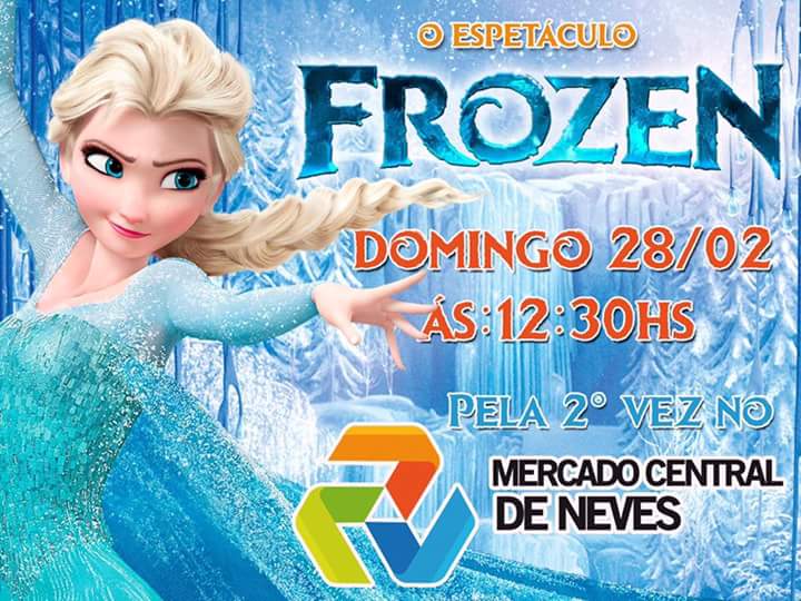 O Mercado Central de Neves promove, neste domingo (28), às 12h30, nova apresentação do espetáculo Frozen. A entrada é gratuita.