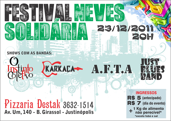 As bandas independentes da região de Justinópolis se reunirão antes do natal para realizar um evento beneficente que promete agitar a cidade: o Festival Neves Solidária, com a apresentação de "O Instinto Coletivo", "Karkaça", "A.F.T.A" e "Just Blue Bands".