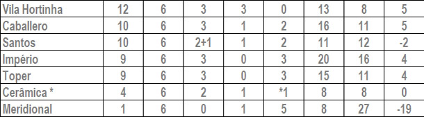 * obs: Cerâmica Perda de 3 pontos para o Santos Art:203